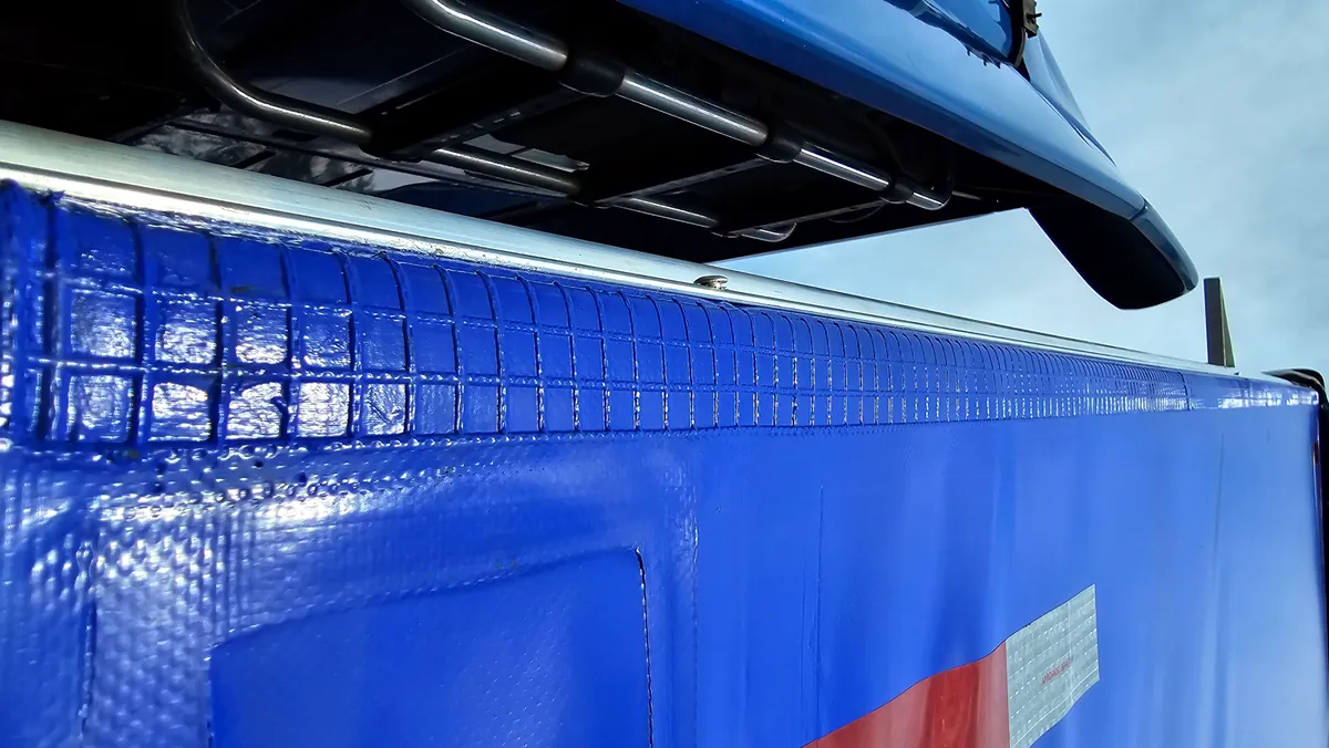 Cortina lateral fabricada em lona Sider 12×12 fios, gramatura 920 g/m², desenvolvida para baús com abertura lateral. Confeccionada sob medida. Acompanha fivelas, cintas e rodízios já instalados. Não acompanha ferragens de instalação como tubos ou perfis de alumínio. O tecido reforçado resiste ao uso intenso de carga e descarga, raios UV e variações climáticas.